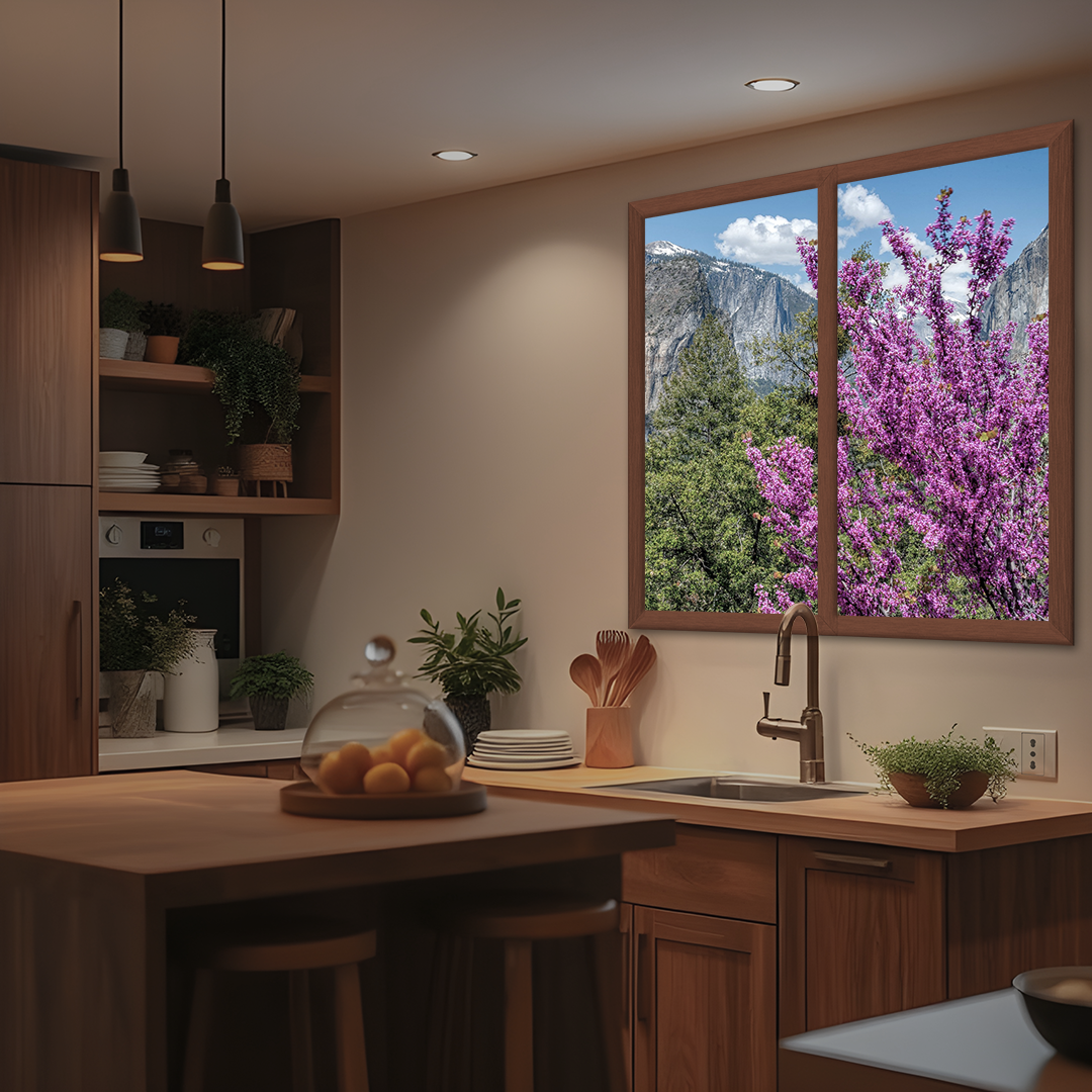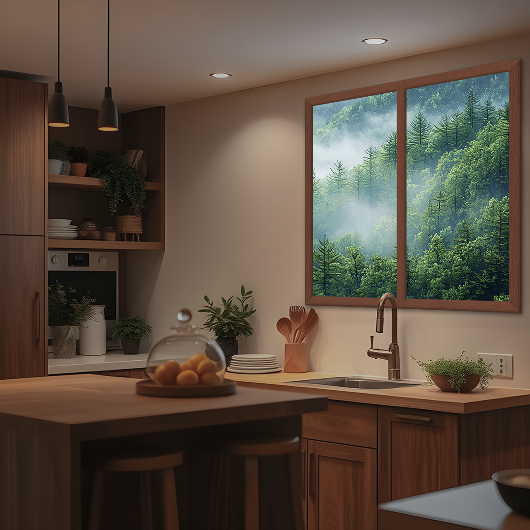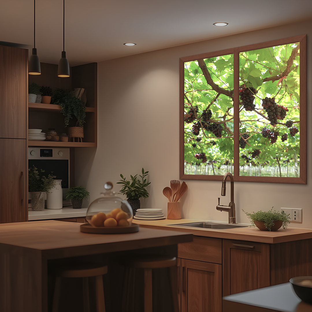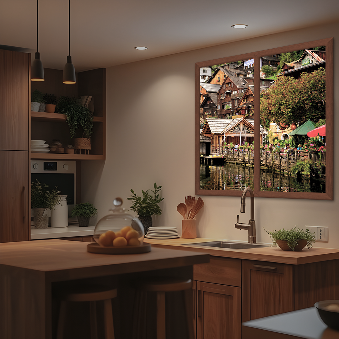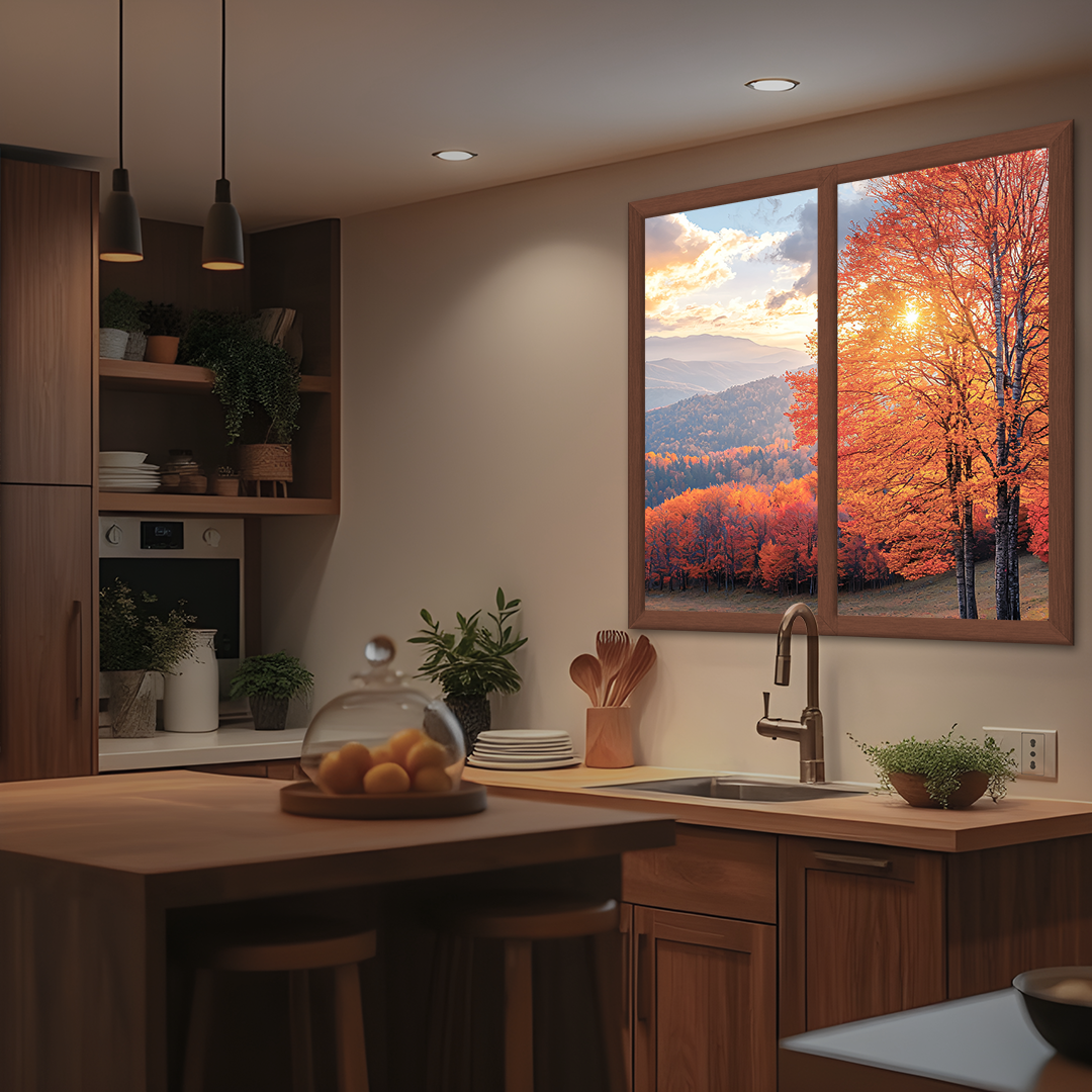 Panourile luminoase LED sunt decorate cu rame din lemn natural + imagine imprimata pe un material special care permite selectiv trecerea luminii pentru un efect realist. Optional se poate atasa un maner decorativ (+30 Lei), completand astfel asemanarea cu o fereastra reala.
