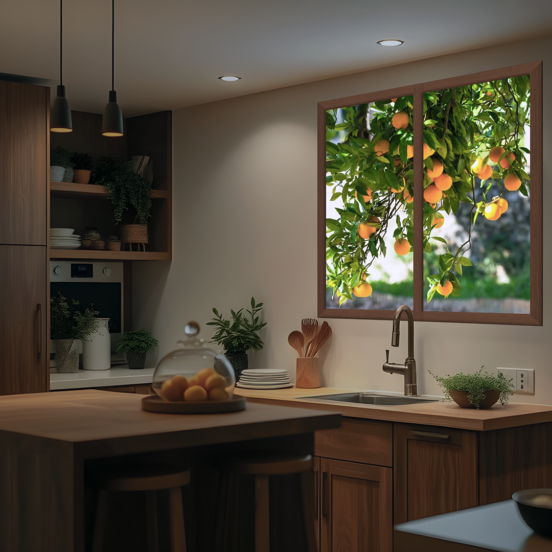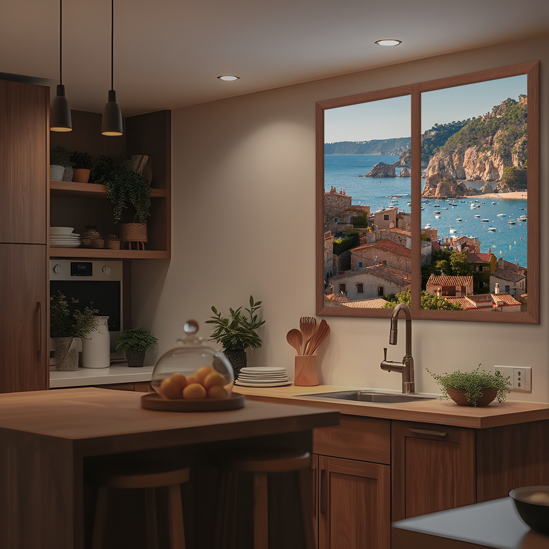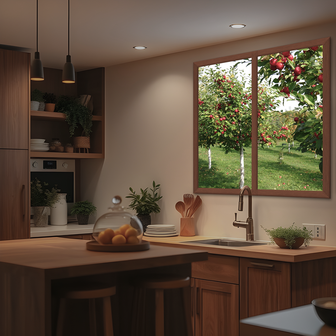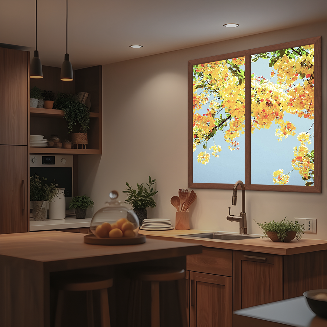 Panourile luminoase LED sunt decorate cu rame din lemn natural + imagine imprimata pe un material special care permite selectiv trecerea luminii pentru un efect realist. Optional se poate atasa un maner decorativ (+30 Lei), completand astfel asemanarea cu o fereastra reala.